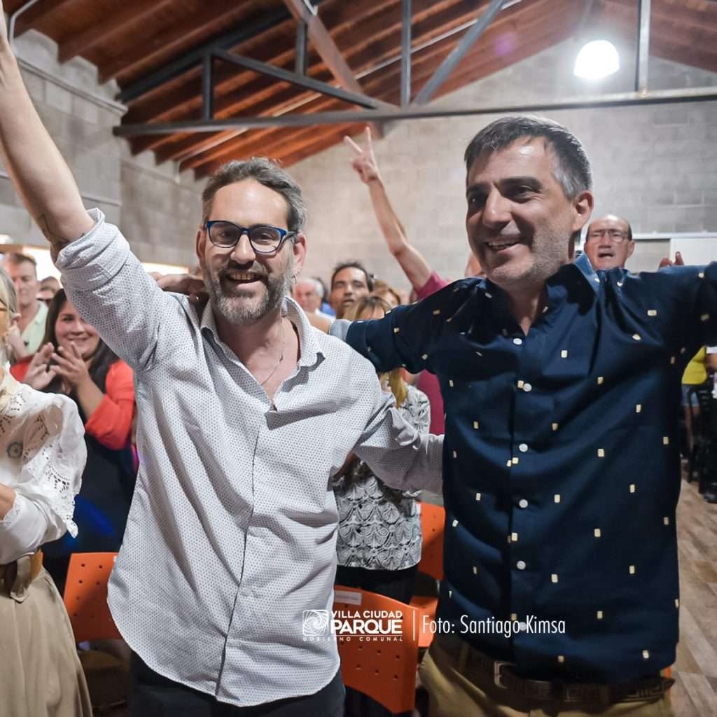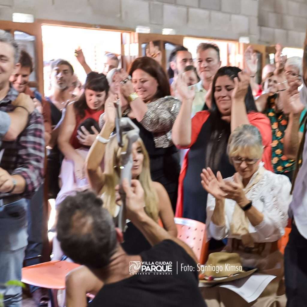 A 40 años de la recuperación de la democracia, este pasado 10 de diciembre se llevó a cabo a nivel nacional, provincial y local la asunción de autoridades gubernamentales. En nuestro pueblo la cita se dio a las 12 del mediodía, en el salón de la Escuela Popular de Artes, el lugar colmado de vecinas y vecinos, algunes incluso debieron mirar desde las ventanas ya que no había más lugar adentro, para acompañar al jefe comunal saliente, Pablo Riveros, y dar la bienvenida al entrante, Diego Ruiz, ambos representantes de la Unión Vecinal, fuerza política que gobernó Villa Ciudad Parque durante los últimos cuatro años y lo hará durante otro periodo más.