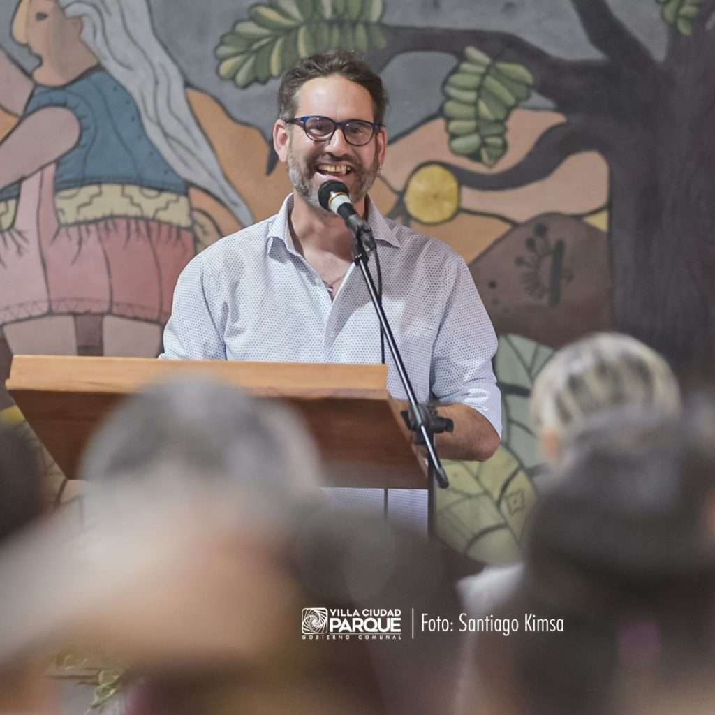Con las instituciones del pueblo presentes, banderas de ceremonia y la comunidad reunida, escuchamos primero palabras del jefe comunal saliente, Pablo Riveros, quien hizo un pequeño racconto de todo lo hecho y transitado desde diciembre de 2019 a la actualidad. Difícil enumerar todas las obras públicas y políticas llevadas a cabo durante este periodo, pero sí destacar lo más relevante que hace que hoy Villa Ciudad Parque esté posicionado como un pueblo ejemplo en varios ámbitos, dentro de la provincia y el país.