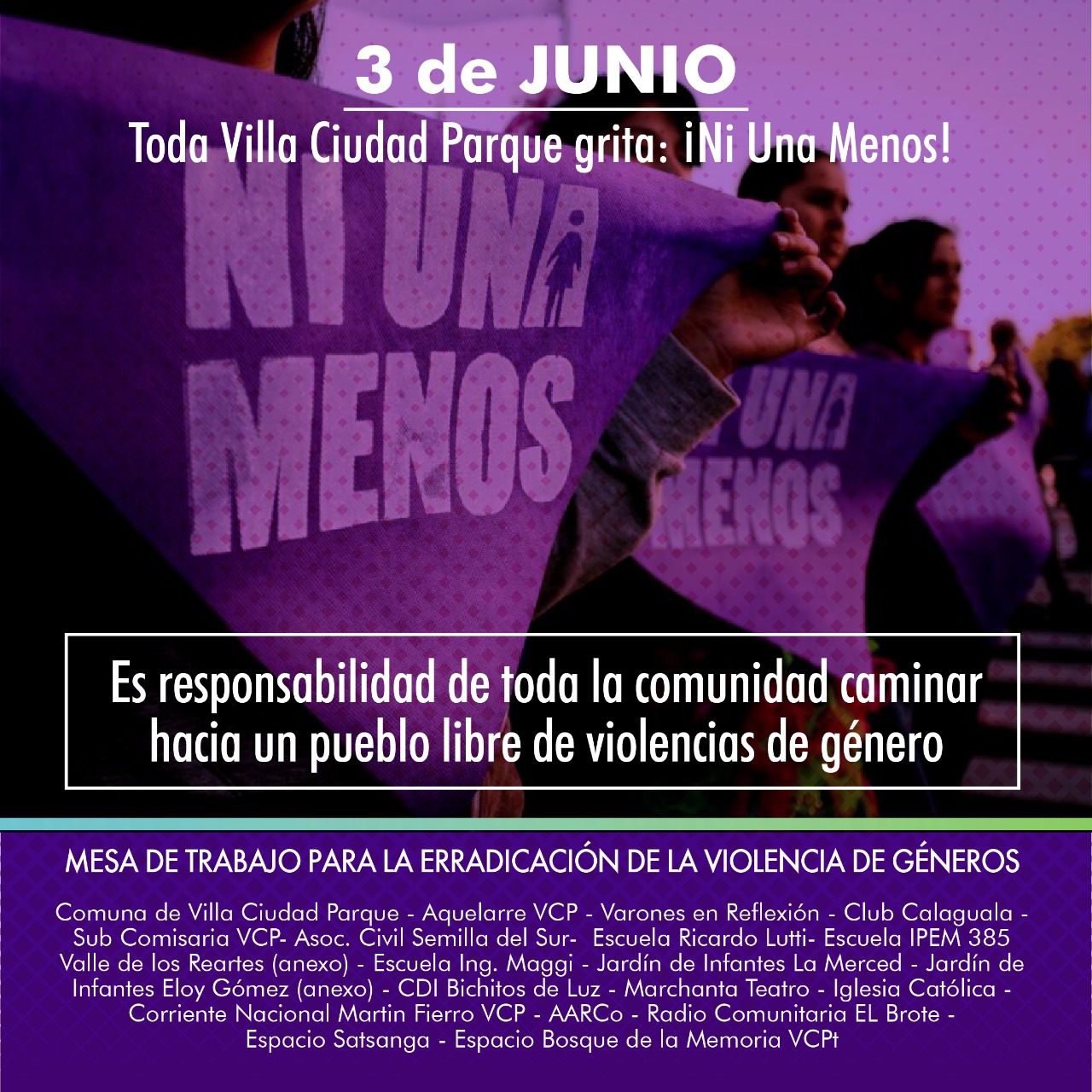 3 de Junio. Toda Villa Ciudad Parque grita: ¡Ni Una Menos!